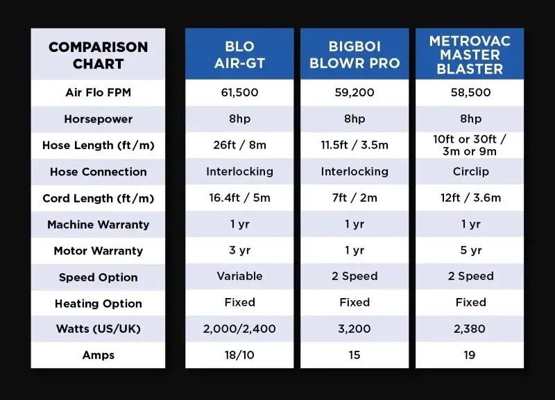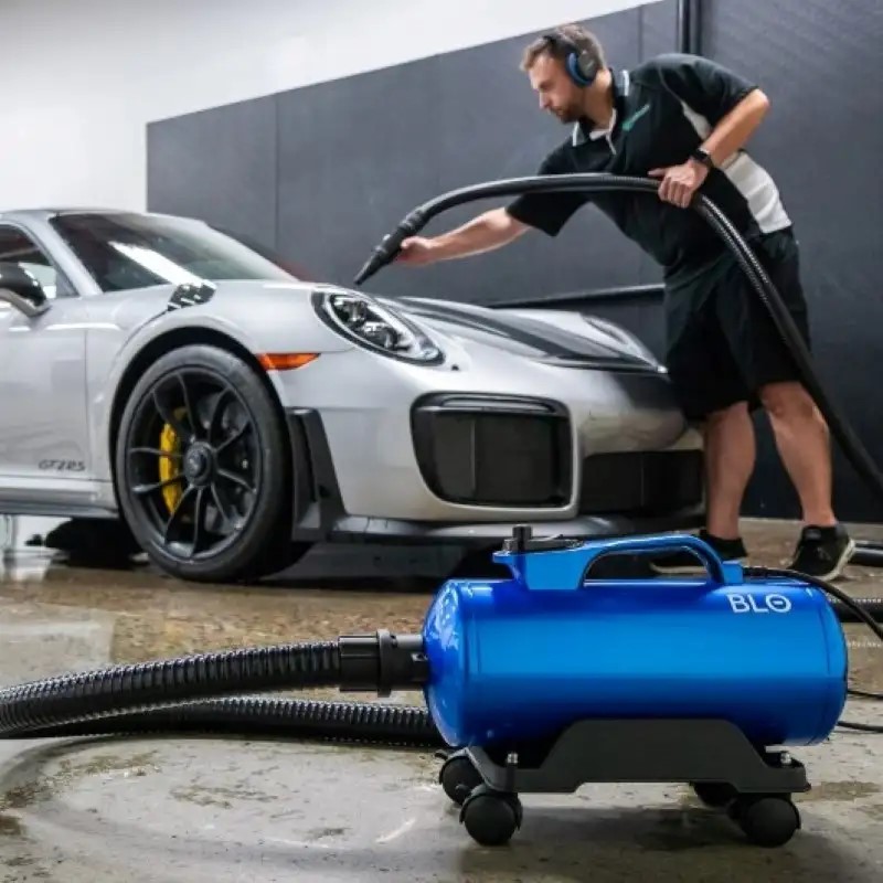 The most powerful Car Dryers on the market, featuring twin motors that move water away effortlessly, and provide a much faster and safer drying method. The BLO comes with a swiveling wheel base and a super long hose that is overĀ (8 Meters) to do a car without having to move your blower around often.