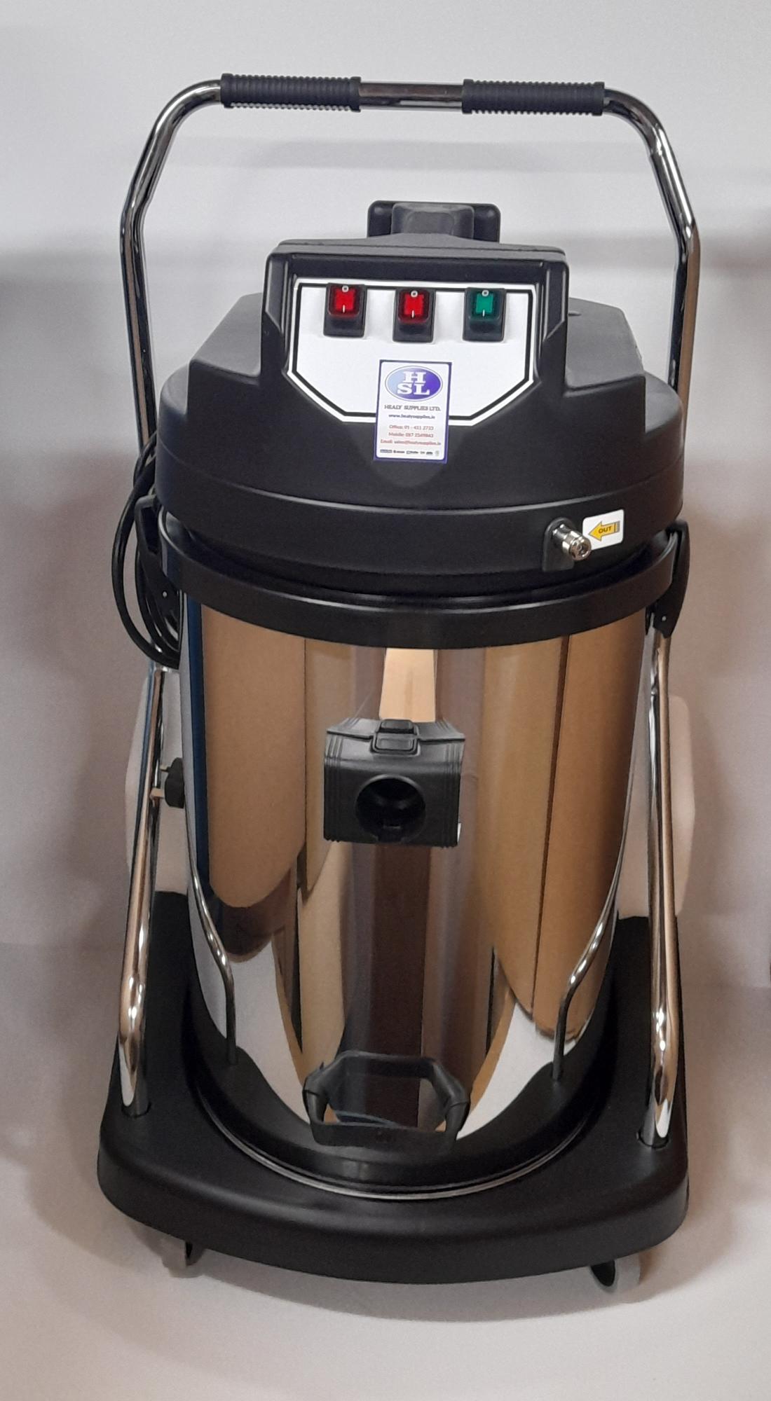 Extractor with three double stage motors is indicated for the cleaning of carpets and upholstery. This model is provided with the 20 liters detergent tank designed to be completely separated from residual liquids tank. It is available with stainless steel 77 liters tank and tipping trolley.