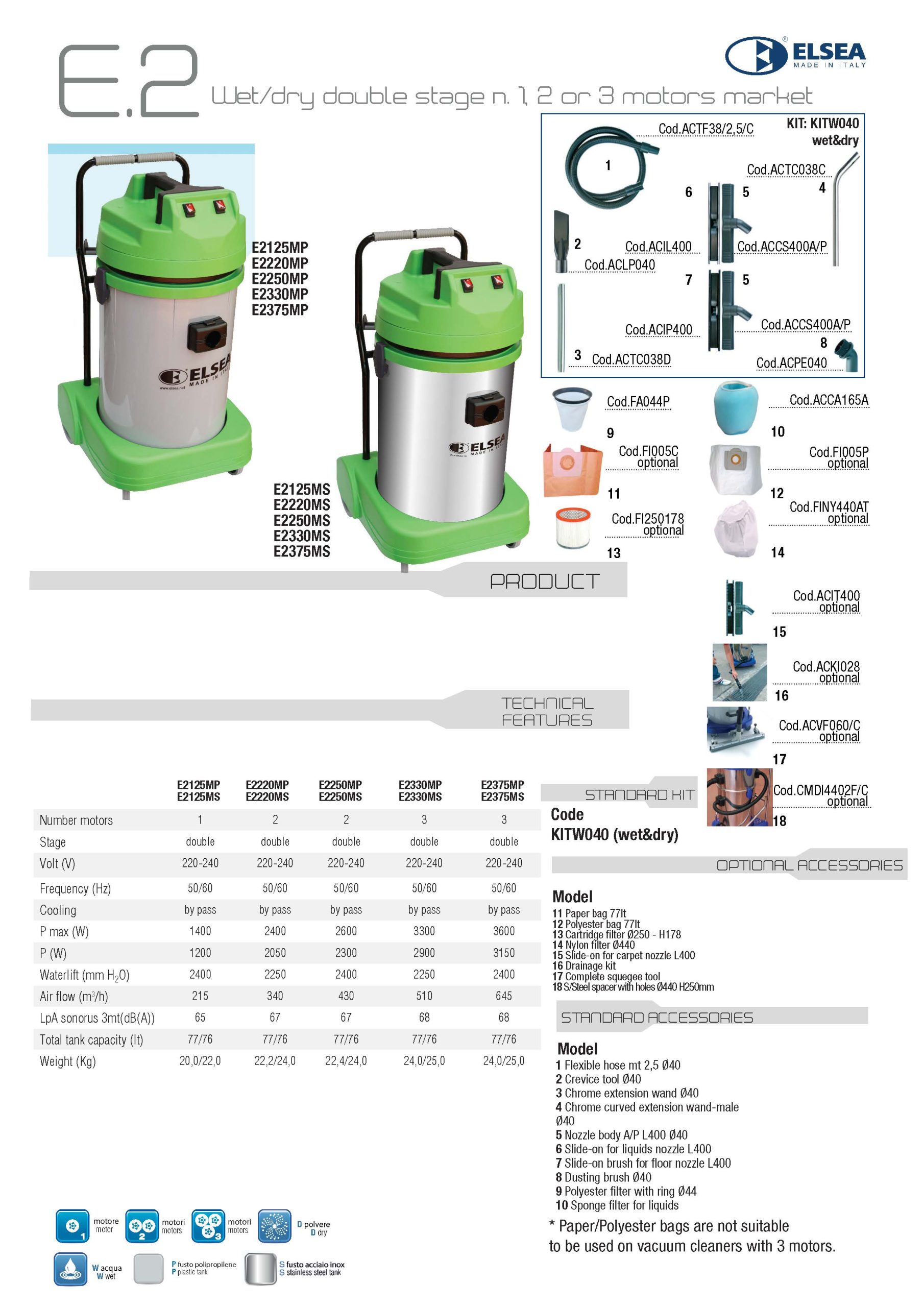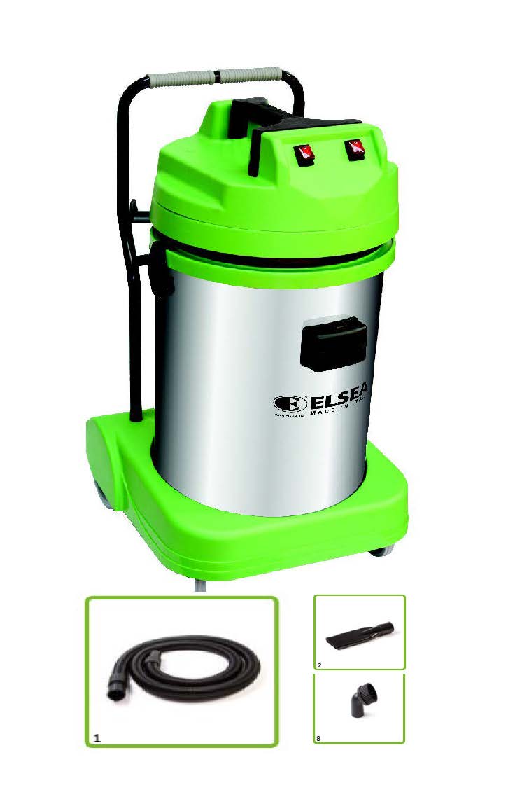 Suitable for wet and dry applications, fitted with two two-stage motors and tipping trolley.