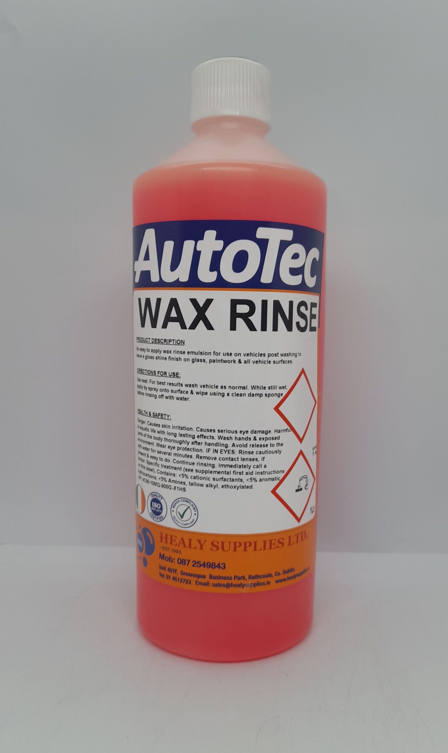 Premium quality wax rinse. Higher dilution rate gives greater economy and value for money. Saves money, gives brilliant water beading and a high shiny finish. Wax Rinse is used primarily in automatic car washes to impart a final gloss finish.
